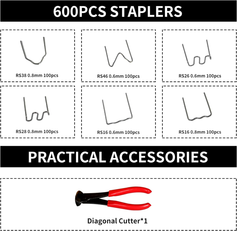 ?Convenient design? Plastic Welder includes: 1 Hot stapler unit, 1 diagonal cutter, 1 power cord, 1 user manual and 600 staples, all in a carton