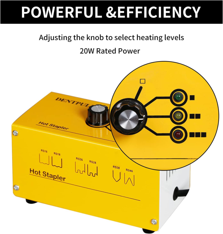 ?20W rated power? DENTPULLER 20W Plastic Welder can switch 3 heating levels (low/medium/high) by adjusting the knob, welding, repairing various plastic products, leaving broken objects intact, allowing you to get better working results