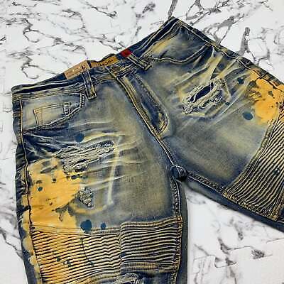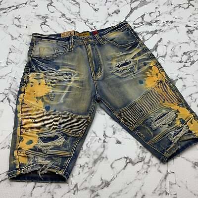Men's Makobi Blue | Yellow Vintage Ripped Casual Denim Shorts NWT