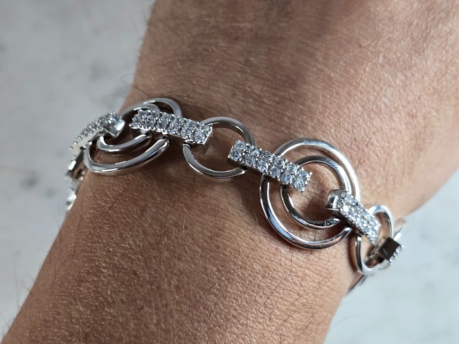 A WOMENS VINTAGE ESTATE STERLING SILVER MODERNIST BRACELET. BRACELET MEASURES 7 3/4" LONG BY 7/8" WIDE AND WEIGHS 33.9g. THIS WOULD MAKE A LOVELY GIFT FOR THAT SOMEONE SPECIAL. ANY QUESTIONS, PLEASE DON'T HESITATE TO ASK. BE SURE TO CHECK OUT SOME OF MY OTHER GREAT ITEMS UP FOR SALE. THANK YOU.