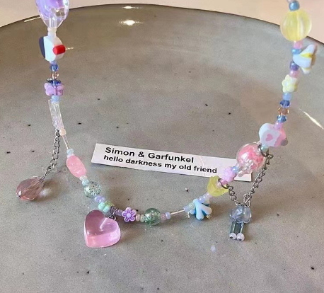 New Dopamine colorful beaded love pendant necklace Sweet cute butterfly flowers