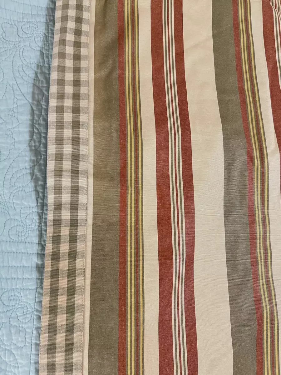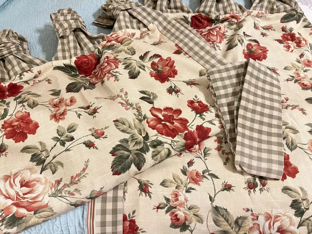 Tiebacks are gingham, reversible with Sonoma print; pinned together.