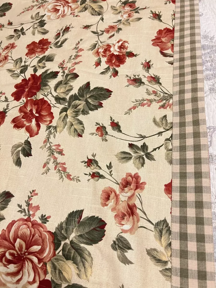 Custom Rose Floral Stripe 4pc 178x123 Check Tab-Top Drapery Panels Tieback Set