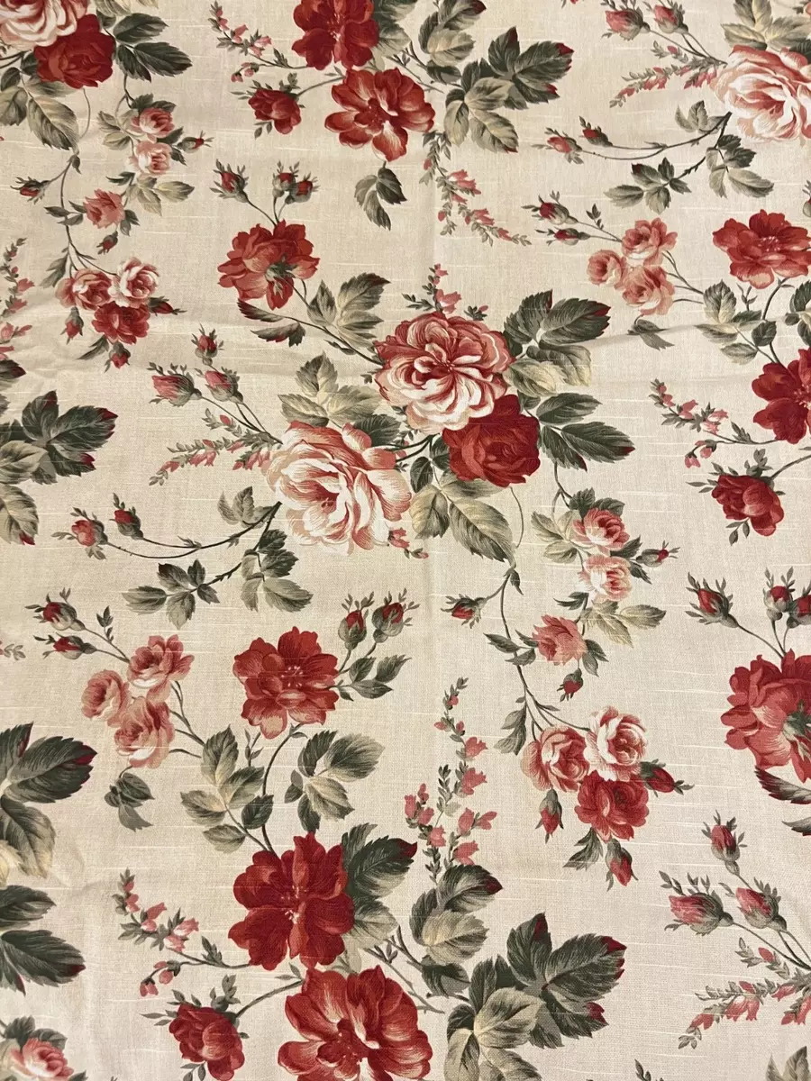 The floral design is 78.5" long to 36.5" plaid trimmed stripe bottom; plus tab-tops.