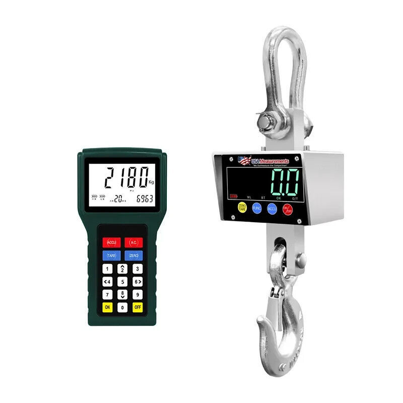 The US-BL20KSS crane scale makes weighing simple, easy, and efficient with our US-WFX handheld display. This device allows users to see the digital weight at the users hand from up to 300?. Great for applications requiring overhead lifting, crane use, recycling, shipping, container weighing, forestry applications and much more. The USA Measurements US-BL20KSS series operates on rechargeable battery and has a bright green LED display for dual viewing. The US-WFX wireless remote operates on batteries, comes calibrated for accuracy, and has a 2 year warranty. (Unit is weather resistant for outdoor use)Specifications:Capacity: 20,000 lbAccuracy: 5 lbUnits: LB or KGUS-WFX Handheld DisplayCalibrated in PoundsTare rage: full cap.Load Cell Material: alloy steelCalibrated for accuracyAC/DC adapter (included)Built-in rechargeable battery2 Year Warranty on Frame2 Year Warranty on ElectronicsNon-NTEP (Not legal for trade) Resources: Big Lift ManualUS-WFX Wireless Display https://youtu.be/i_GwfODHlkM?si=XfVS52bpFL_YWT_v
