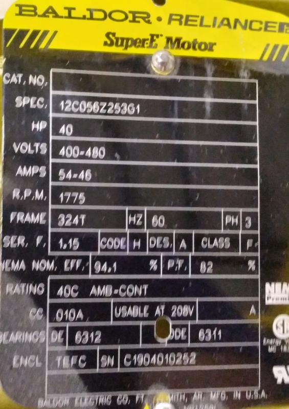 Baldor Reliance 12C056Z253G1 SuperE Motor, 40HP Frame 324T
