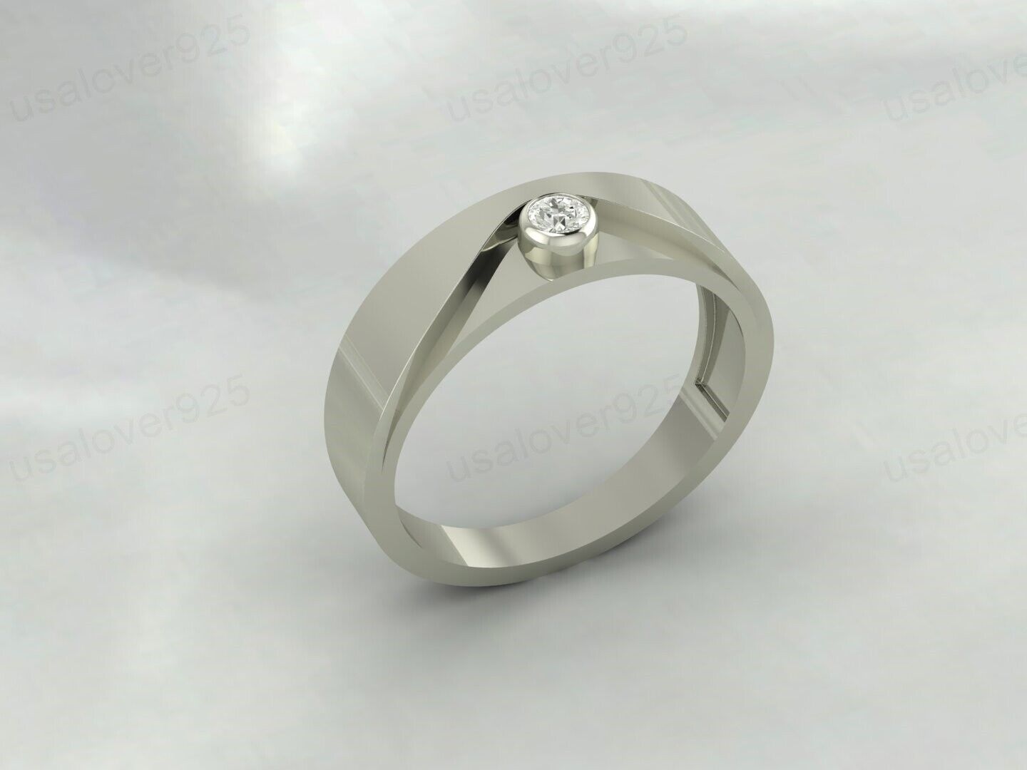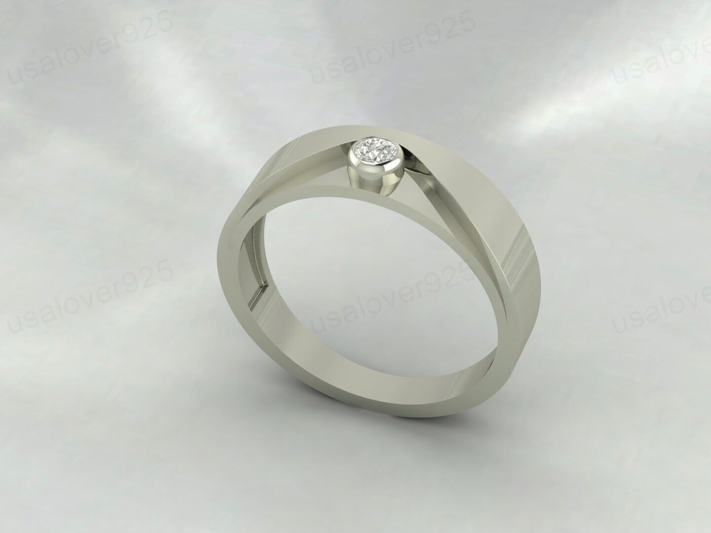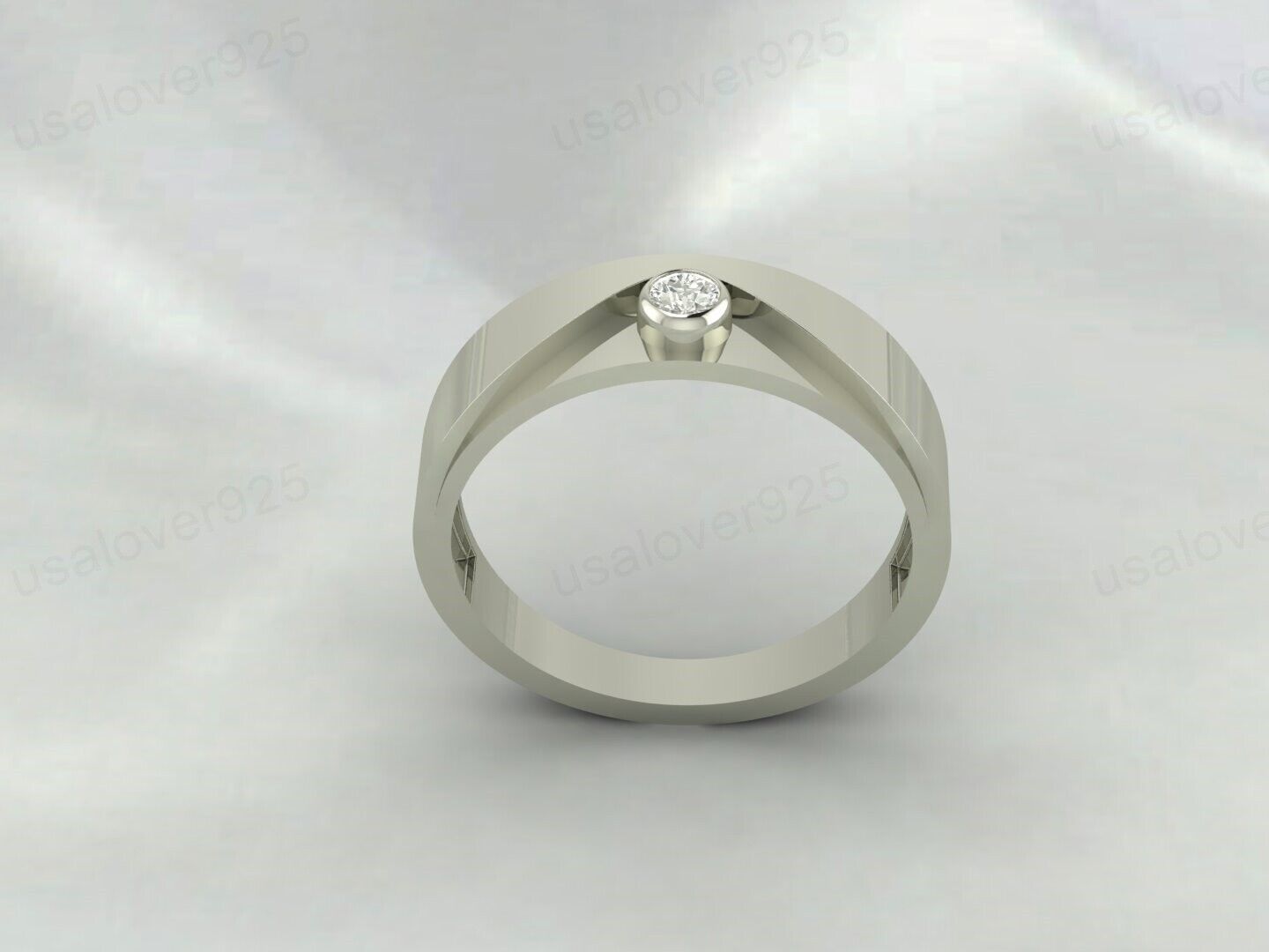 Diamond Stone 925 Sterling Silver Handmade Solitaire Modern Design Women Ring