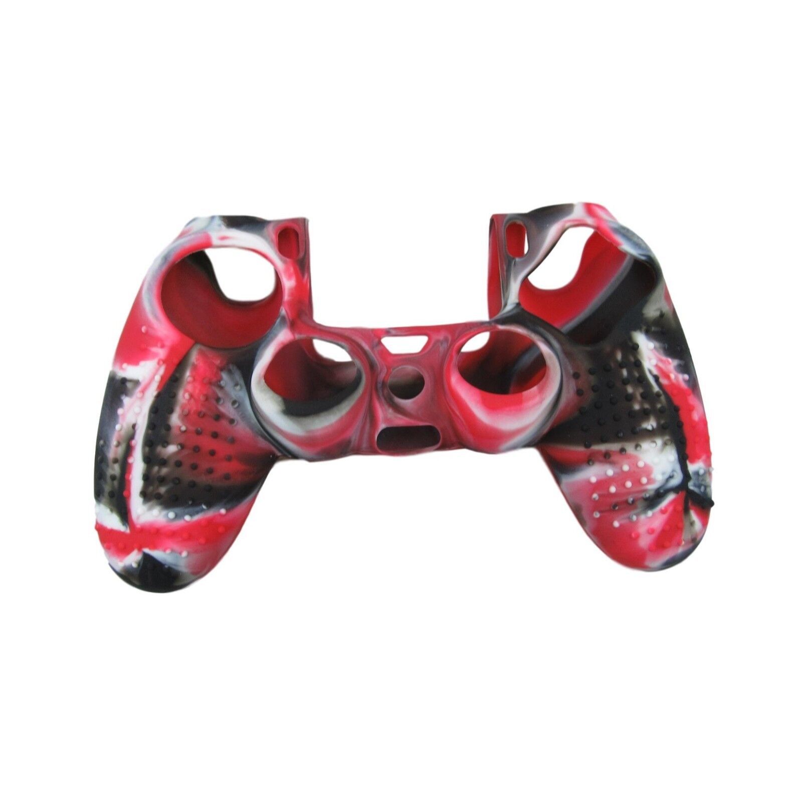 (1) Red PS4 Camo Soft Shell Grip (8) Thumb Grip Stick Caps |