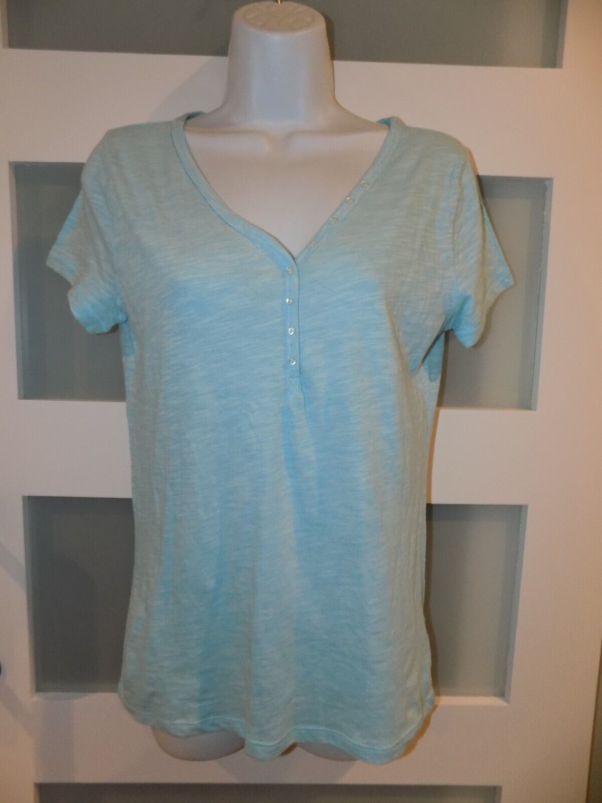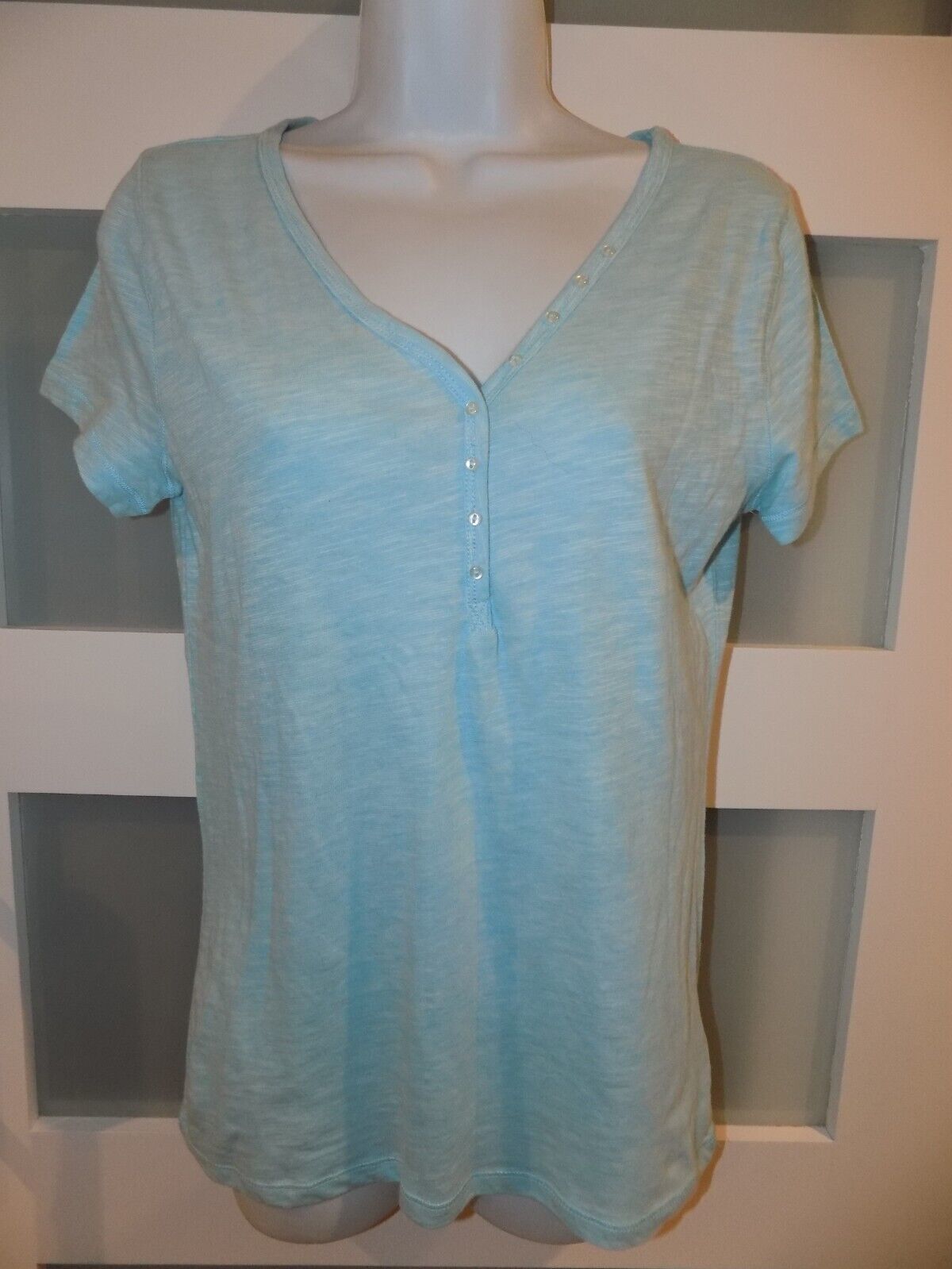 Faded Glory Slub Henley Blue Heather SS Shirt Size S (4/6) Women's NEW