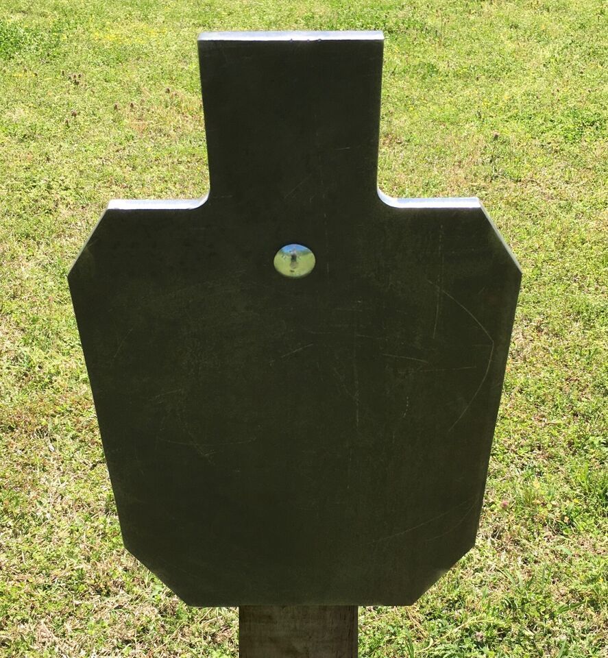 Shooters and spectators must always wear proper eye and hearing protection. Recommended minimum distances from steel targets to shooter are 15 yards for pistols and 100 yards for rifles. If using non-frangible ammunition use pistol ammunition with a maximum velocity of 1500 feet per second. Rifle ammunition muzzle velocity should not exceed 3,000 feet per second. No shotgun slugs, steel birdshot and buckshot ammunition can be shot at steel targets. Never shoot hardened, steel core or armor piercing ammunition at any steel target. Do not use a steel shooting target that has been deformed or damaged.