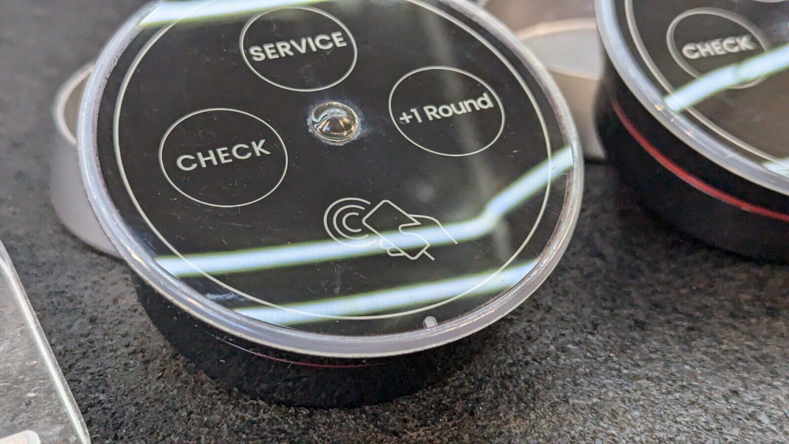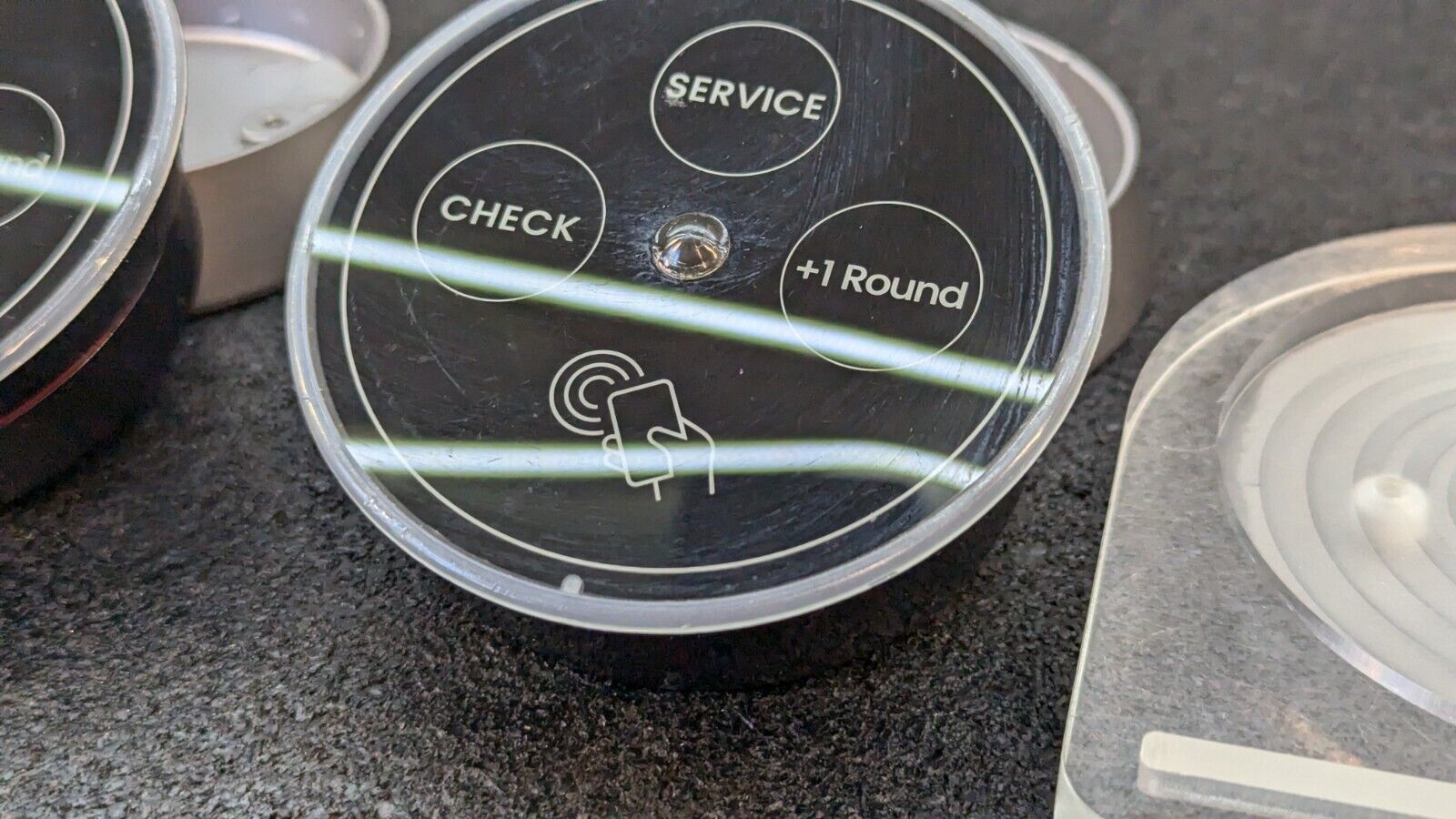 Cleaned and disinfected. Tested to power on. Heptic buttons work and light up the blue circle when pressed. No other testing has been done Usage wear as shown as an example in the pictures. Nothing that affects its functionality.