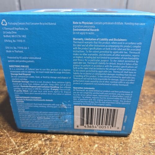 Enjoy the outdoors without worrying about pesky insects with Thermacell Rechargeable Mosquito Repellent. This aerosol device comes in a sleek blue color and is perfect for both indoor and outdoor use. It features a 20-foot protection zone and is effective against fleas, mosquitoes, and ticks.