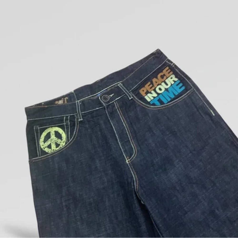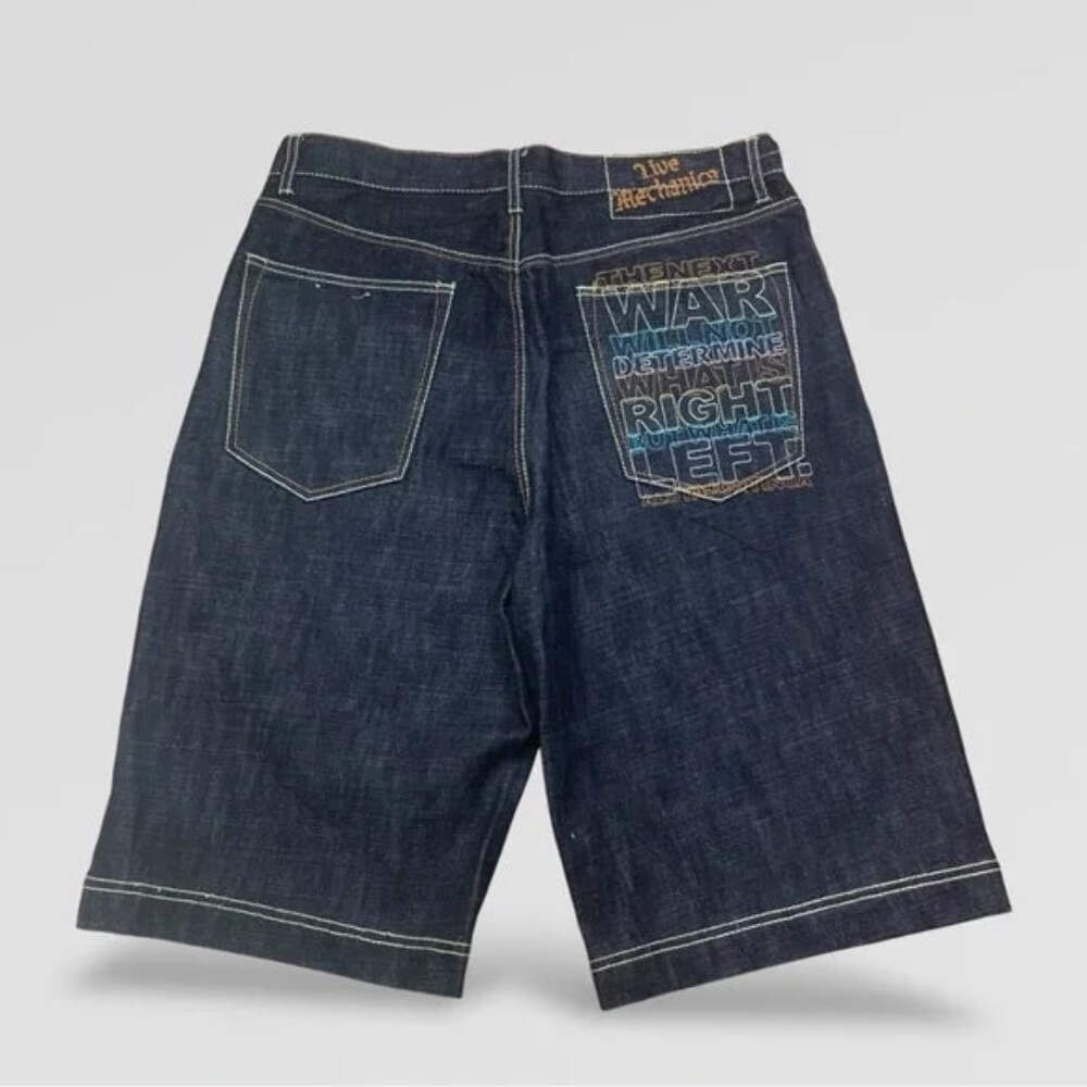 Men's Live Mechanics Peace Sign Raw Blue Denim Shorts NWT