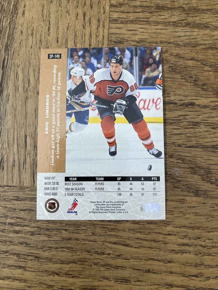 For sale is a 1995 Upper Deck Eric Lindros trading card, numbered 149. This card features the former NHL player and is part of the Sports Trading Card category. It is in excellent condition and would make a great addition to any collection. The card represents Lindros during the 1995 season, and is a must-have for fans of Ice Hockey and the National Hockey League (NHL).