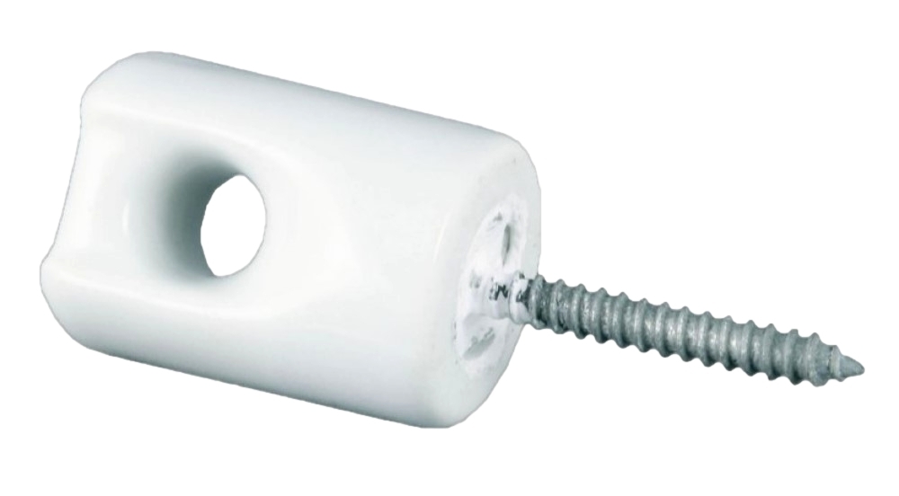 Small ceramic lag screw insulator comes ready-to-use for convenience