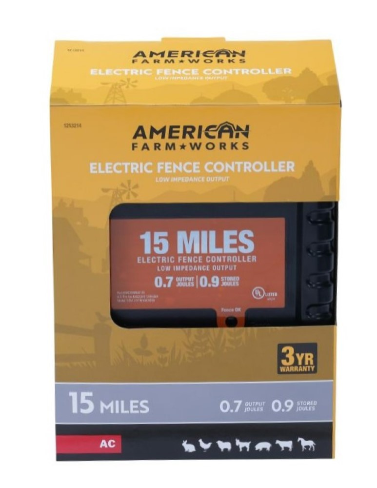 American FarmWorks EAC15MN-AFW 0.7 Joule 15-Mile AC-Powered Low Impedance Electric Fence Charger
