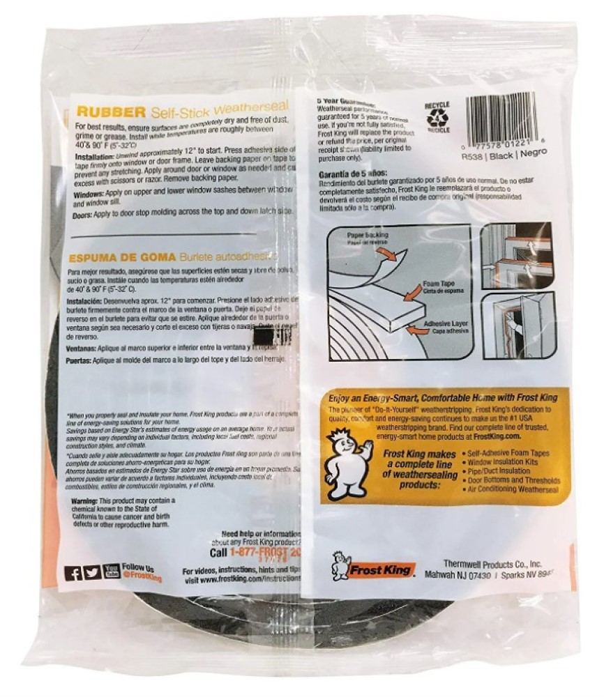 This sale transaction is for a Frost King R538H Rubber Foam Self-Stick Weather-Seal 3/8" x 5/16" x 10 ft., Fits Gaps Between 9/16" and 1/4" - Black, included exactly what is pictured.