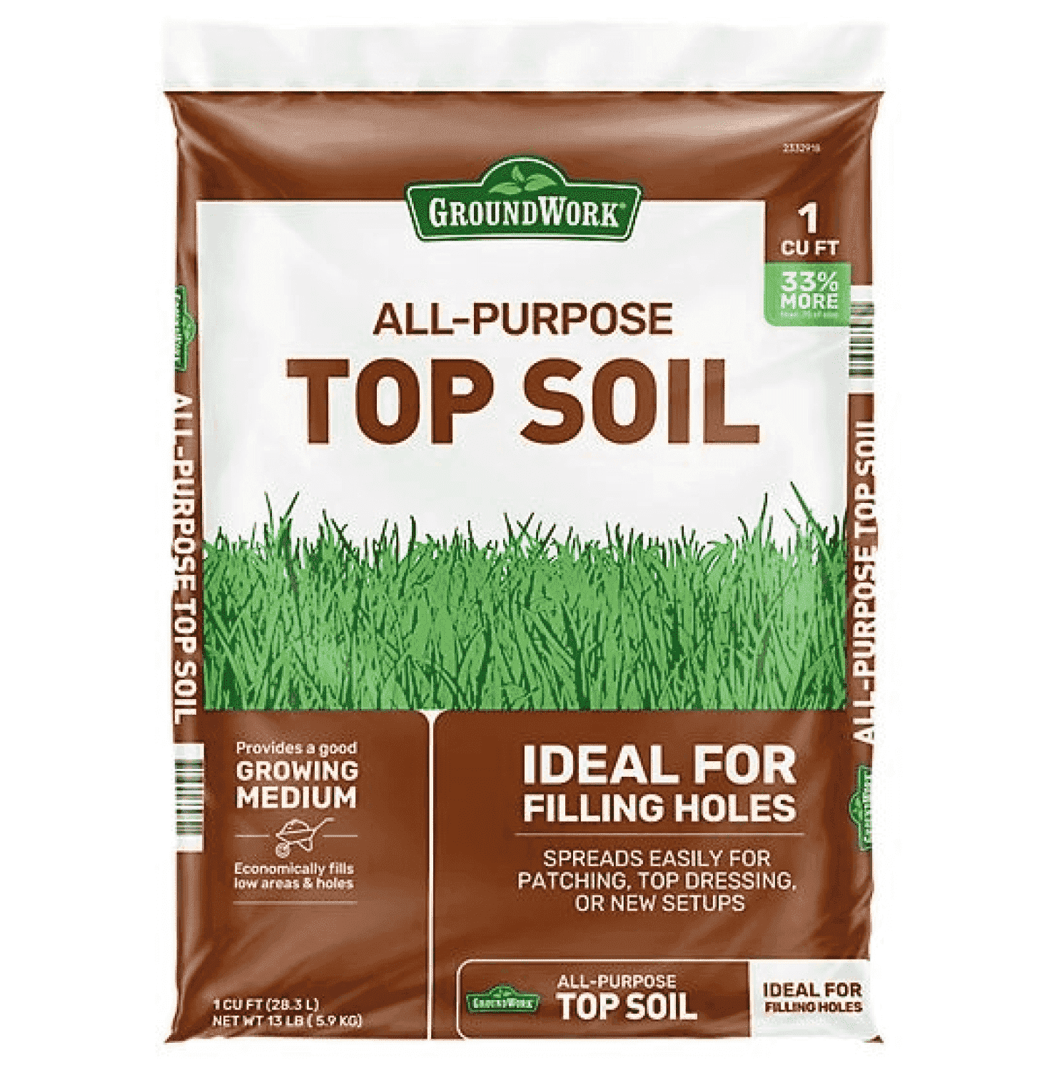 Fill holes and patch lawns using the GroundWork 13 lb. 1 cu. ft. All-Purpose Top Soil. This top soil provides a good growing medium and spreads easily to make quick work of lawn maintenance. Great for established lawns and new lawns alike.