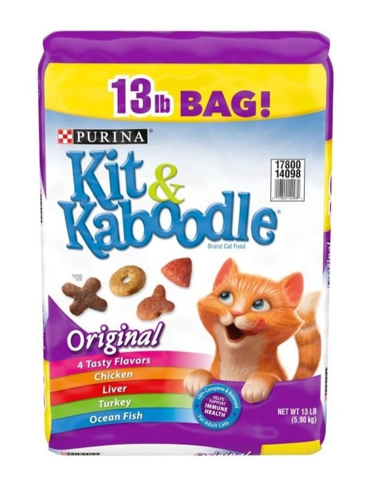 This sale transaction is for a Kit Kaboodle 1780014098 Original Adult Chicken, Liver, Turkey and Ocean Fish Recipe Dry Cat Food 13 lb. Bag, included exactly what is pictured.