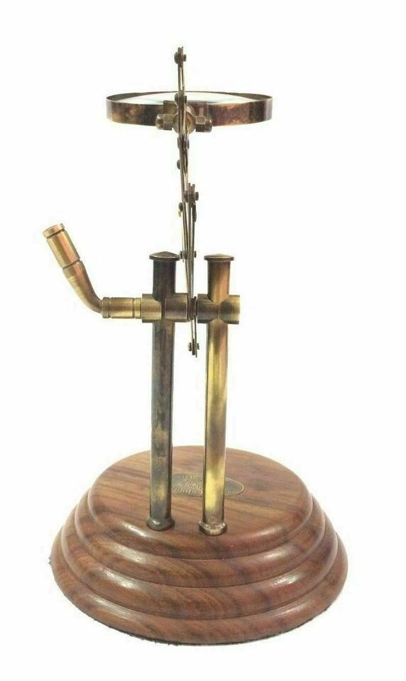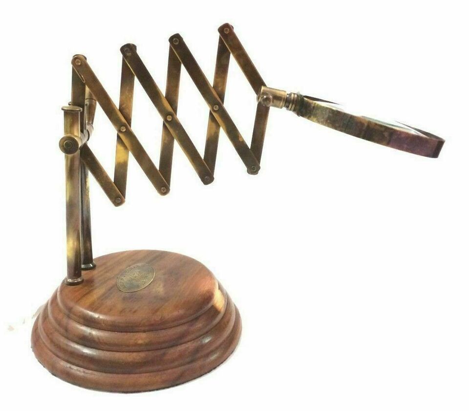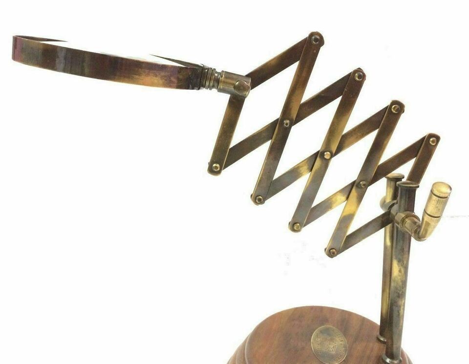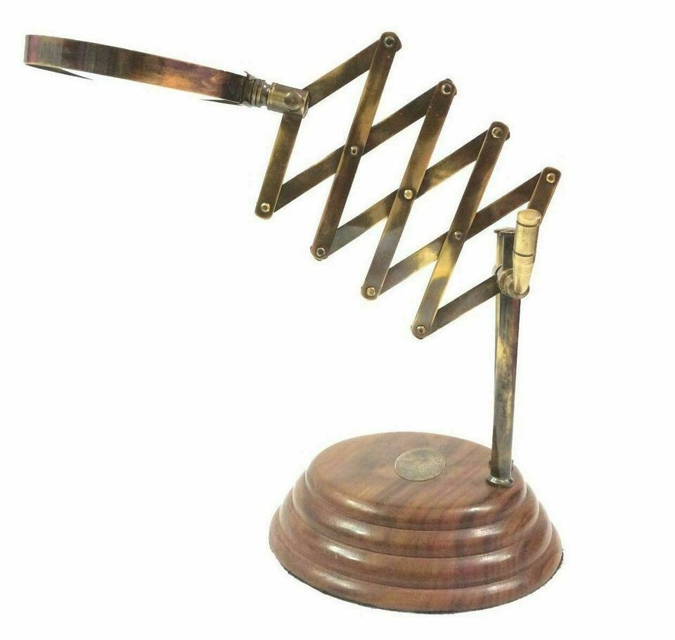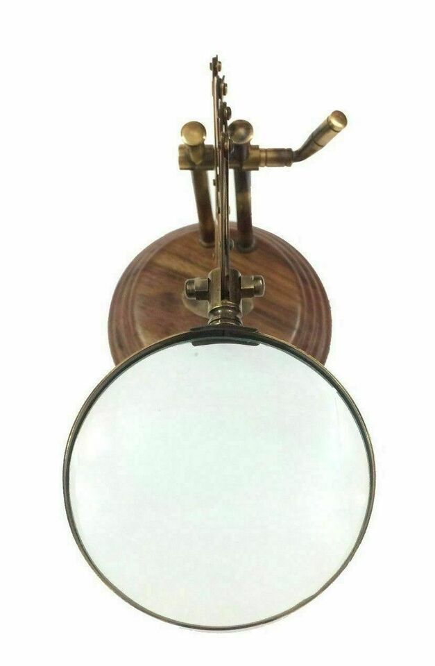 Vintage Antique Brass Magnifier Desktop Channer Magnifying Glass on Wooden Base