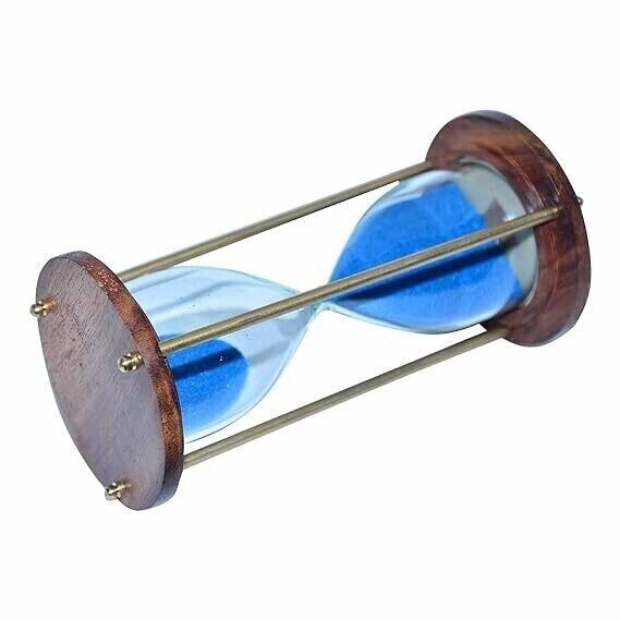 Antique Style Nautical Brass Made Blue Sand Timer Hourglass Decor Collectable