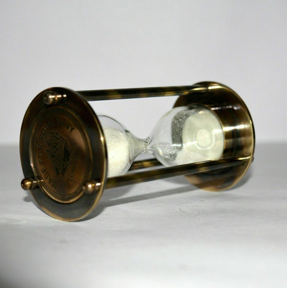 BEAUTIFULLY CRAFTED BRASS HOURGLASS :- Our Beautifully Crafted 2 minutes wood and brass Sand Timer by royal nautical is made from pure brass and glass. All Work is Hand Made. This is a Reproduction Item, Not Sold As Antique.
