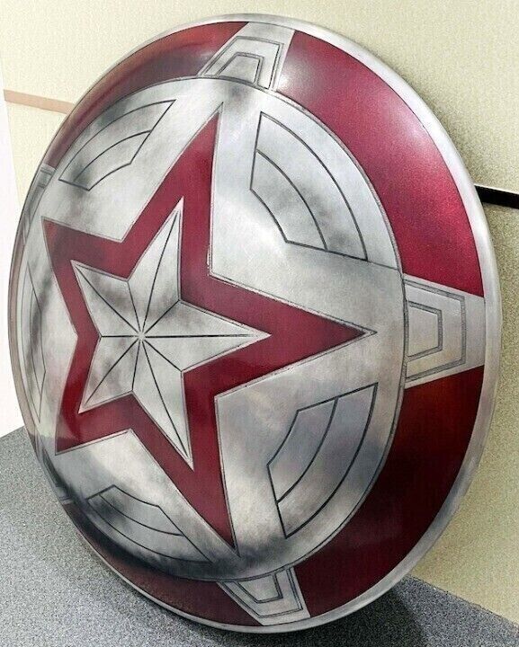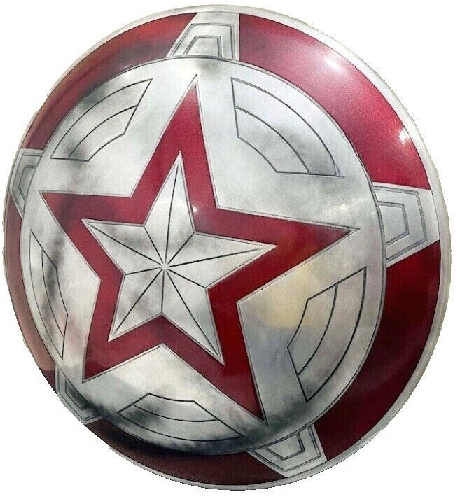 his stunning Red Guardian shield is a must-have for fans of the Marvel Cinematic Universe. Made of 18G steel and crafted in India, this round shield measures 24 inches in size and is perfect for LARPing, reenactments, and cosplay. Featuring the iconic design of the Red Guardian, this ambidextrous shield is a faithful reproduction that captures the essence of the character. With its multi-colored finish and sturdy material, this shield is sure to impress. Add it to your collection of armor and shields, knives, swords, and blades, or simply display it as a decorative piece. Don't miss out on this amazing replica!