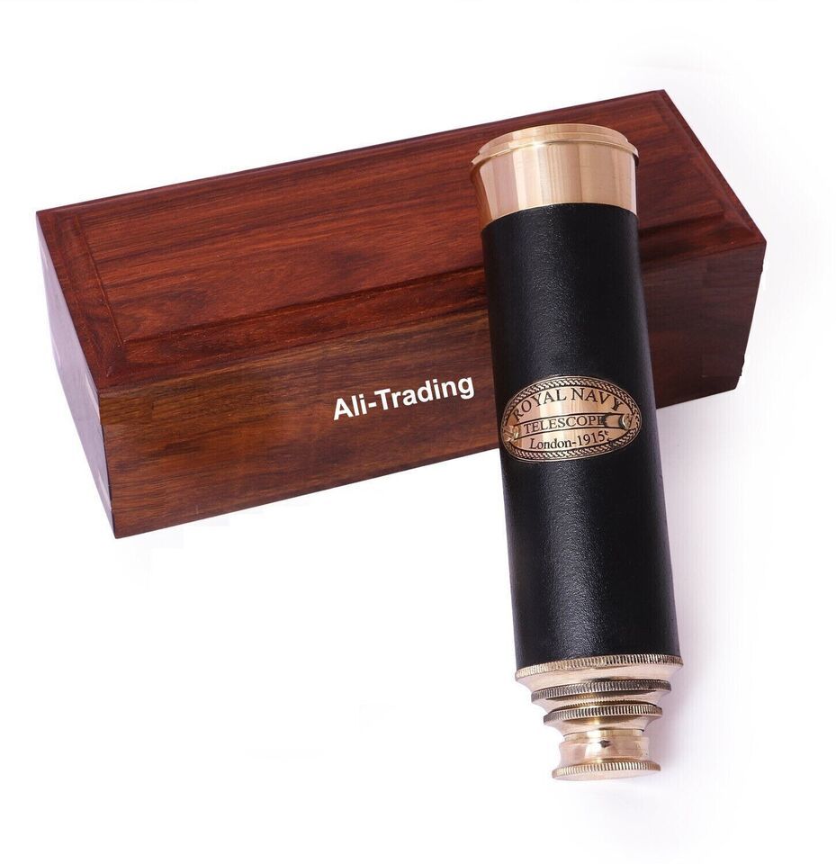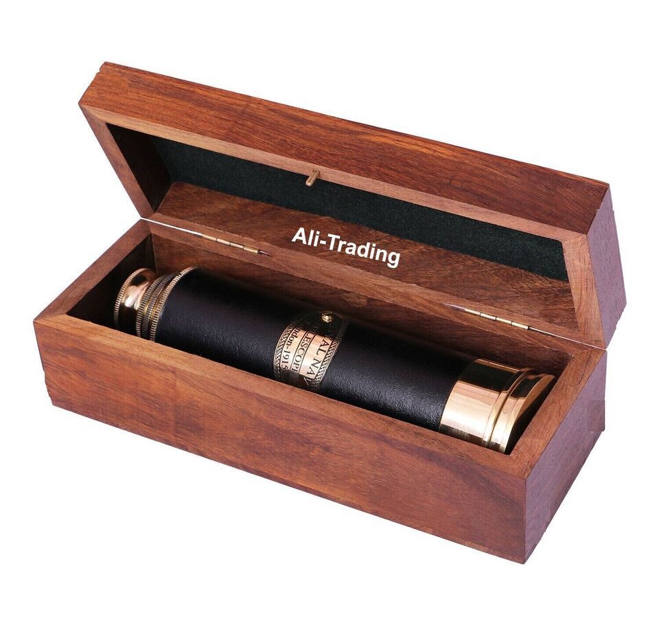 Nautical Brass & Leather Spyglass Marine Royal navy Telescope Wooden Box