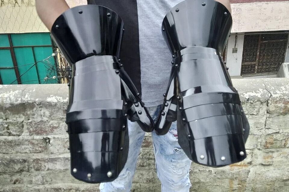 Medieval Knight Lerp Steel Battle Gauntlet Gloves Armor Pair Brass