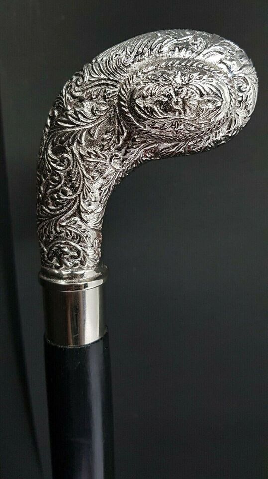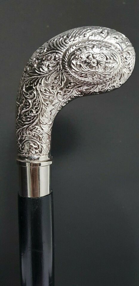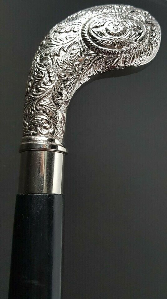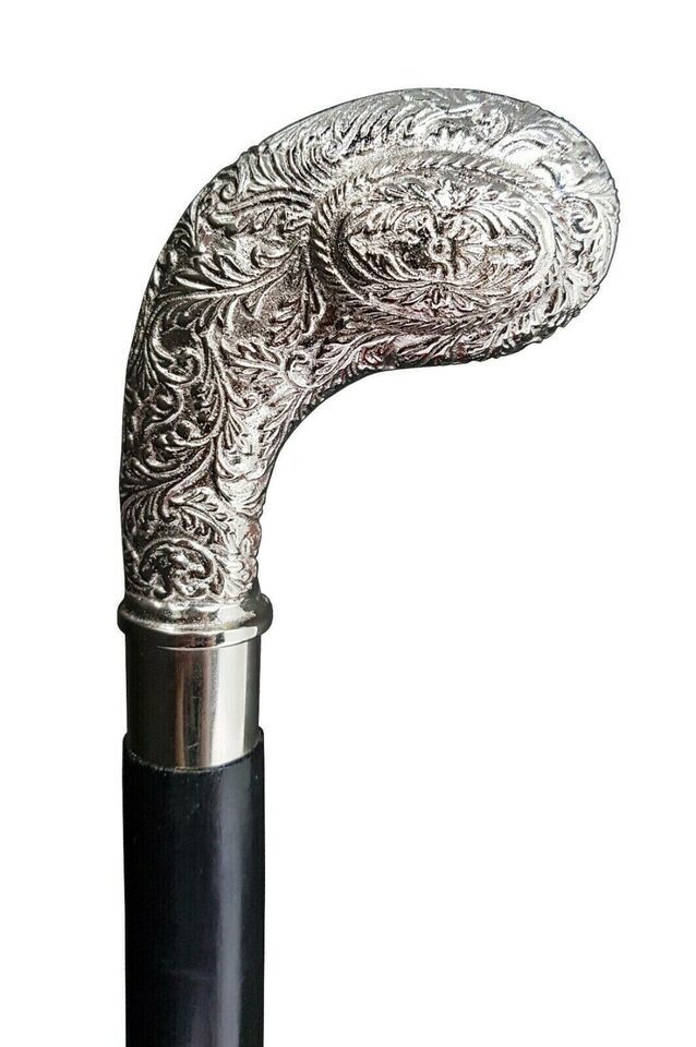 Sterling Silver Brass Engraved Head Handle Wooden Handmade Walking Stick Cane