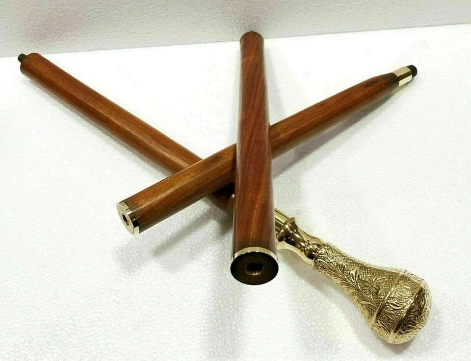 Designer Brass Nautical Long Head Handle Vintage Style Wooden Walking Stick Cane
