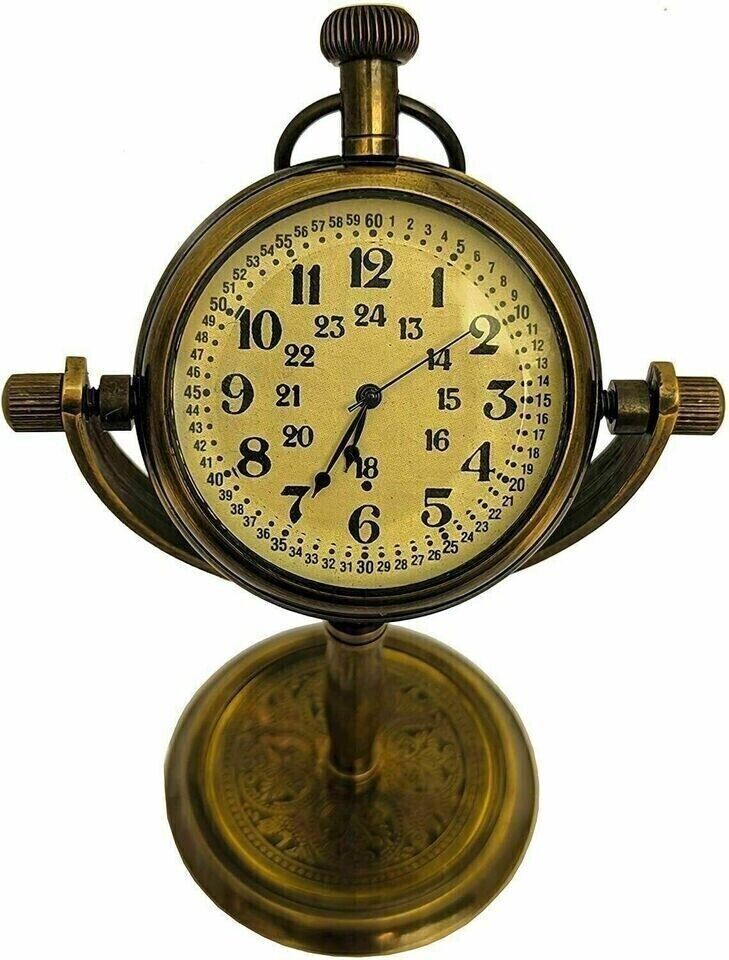 Clock Brass Table Decor Desk Nautical Antique Vintage Watch Maritime Top Marine