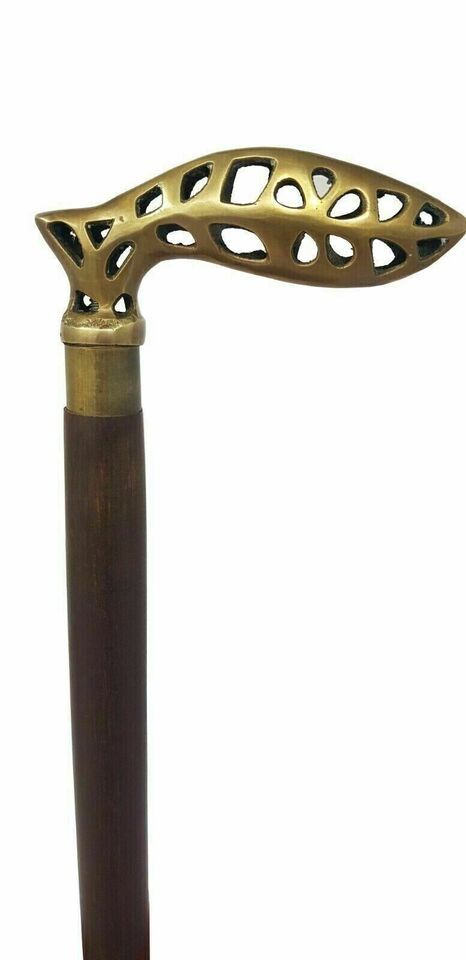 Walking Stick Wooden Cane Antique Brass Solid Head Handle Vintage Handmade Gift
