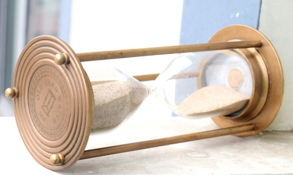 Solid Brass Sand Timer Hourglass Vintage Count Sand Glass Working Decor Timer