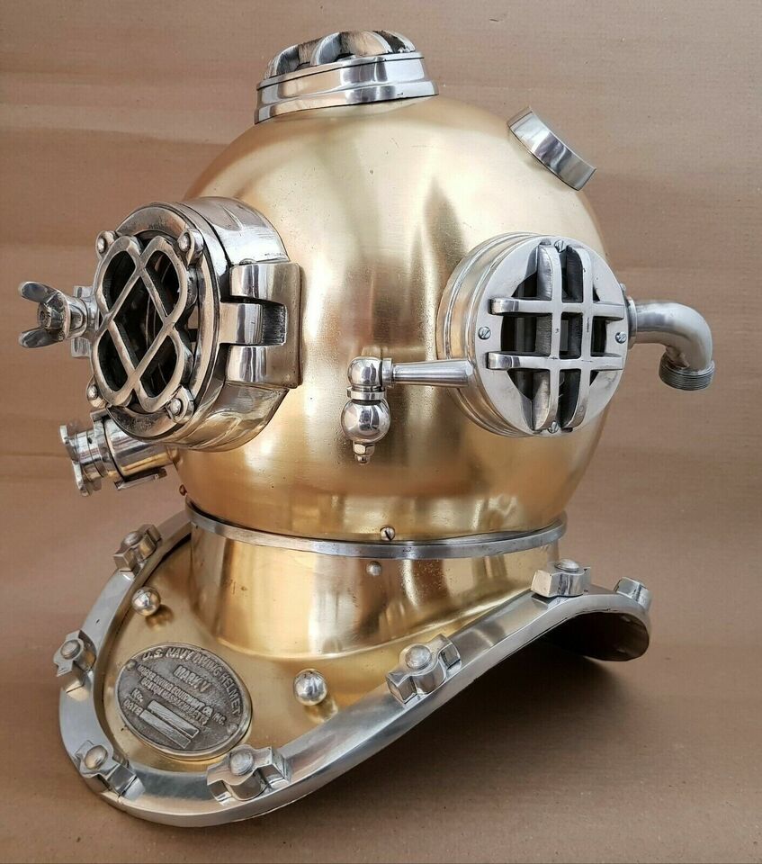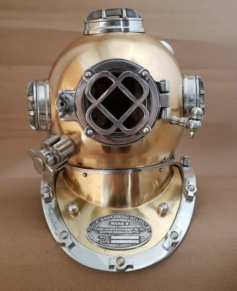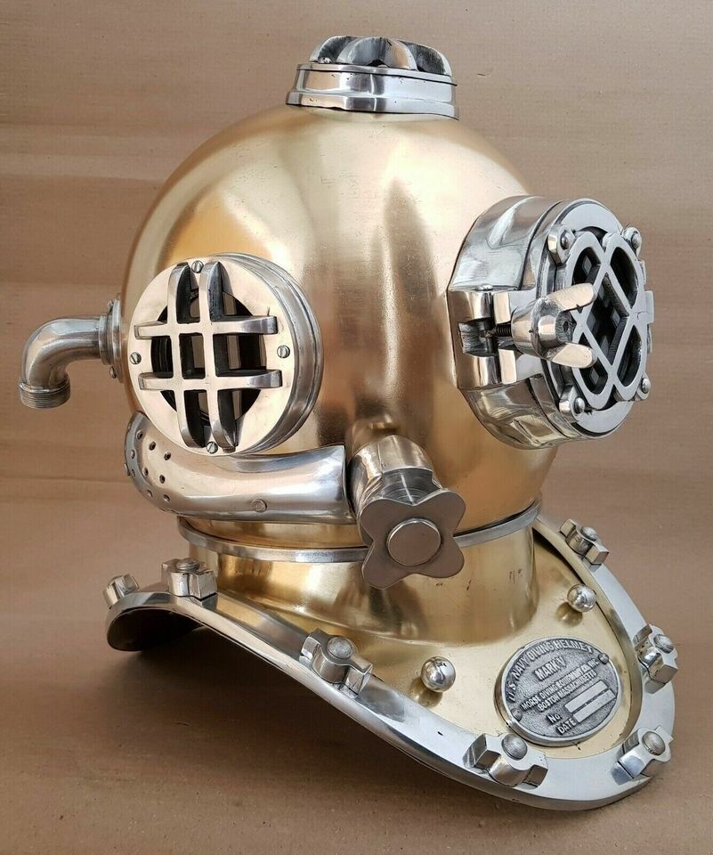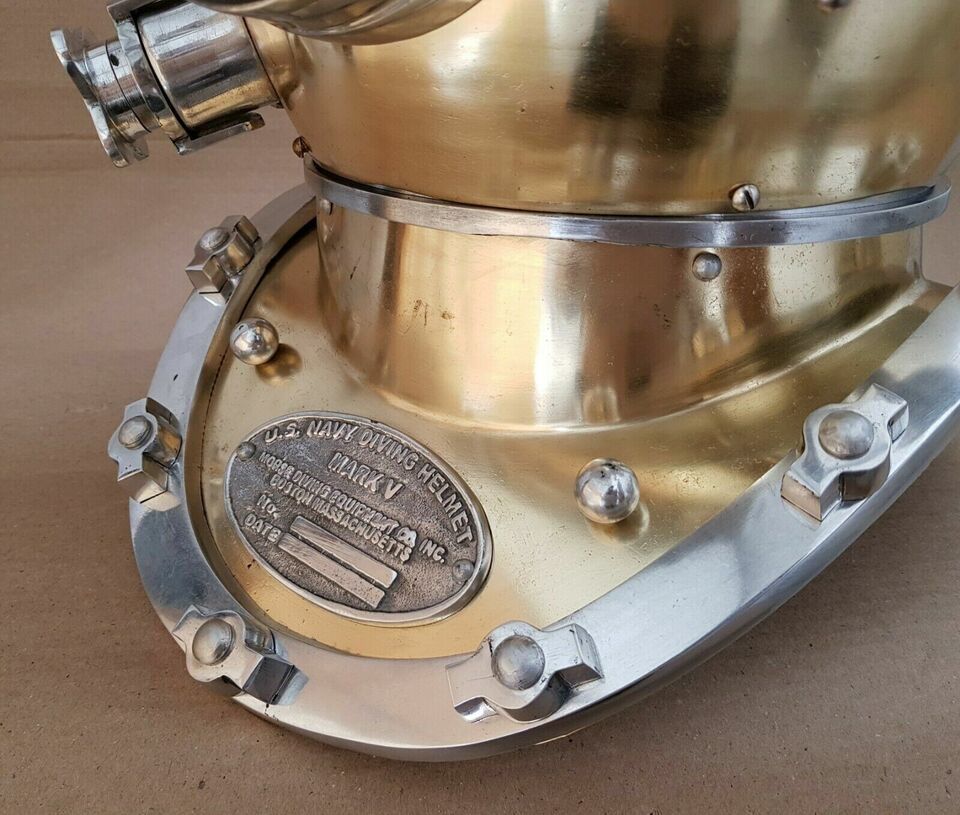Casque de plongee vintage brillant U.S Navy Mark V Deep Sea Divers Boston 18"