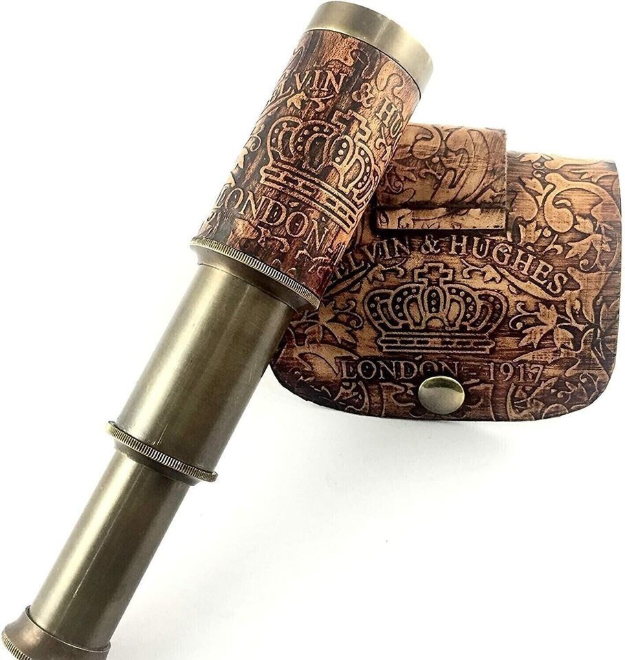 Incredible Collection : We have the World's Largest Collection of Brass Nautical and a vast range of Nautical Telescopes. Our Telescopes are made with high quality Brass, Glass Lens, and some are sheathed with leather, some are of wooden. Most of the telescopes are packed in Wooden Leather cases as described and also come in different finishes antique, bronze, dark, nickel polished. All our telescopes are inspired