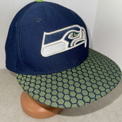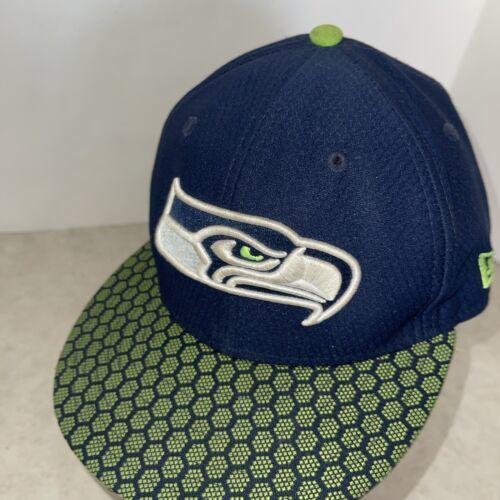 Seattle Seahawks NFL New Era 59Fifty Cap Flat Bill Fitted Sz. 7 1/8 Players Hat