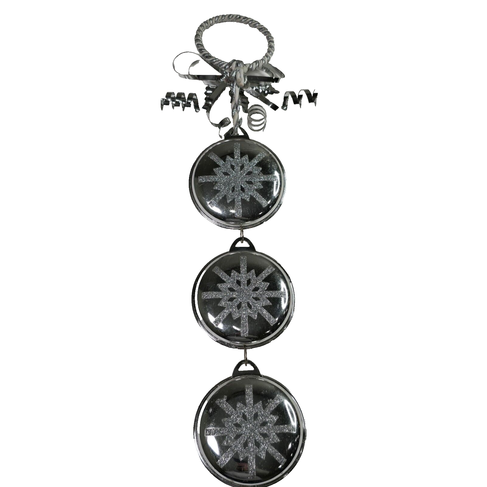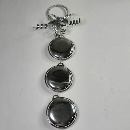 Vintage Holiday Christmas Silver 3 Hanging Bells Door handle Hanger 17in Decor