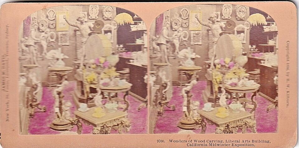 Wonders of Wood Carving 1894 California Midwinter Expo Hand Colored Stereoview