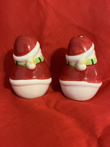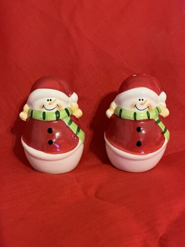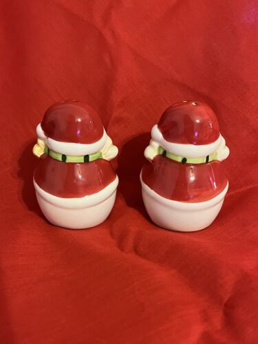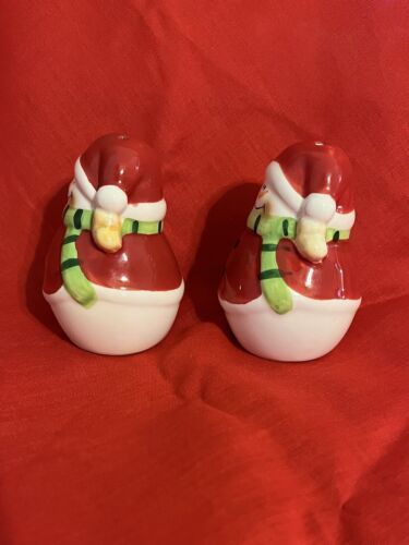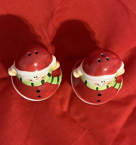Two cute snowmen dressed in Santa suits salt and pepper shaker set. Very good condition. No chips or cracks.