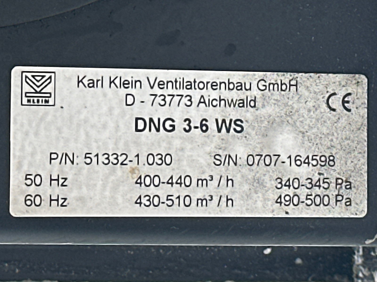 Karl Klein DNG 3-6 WS Blower 430-510m³/h W/2D56K50-2W Motor 150W