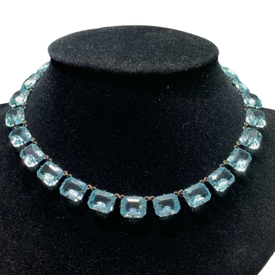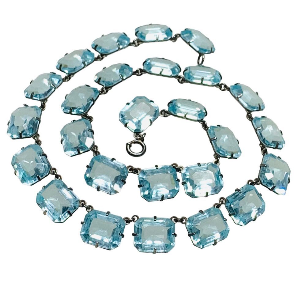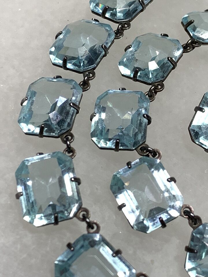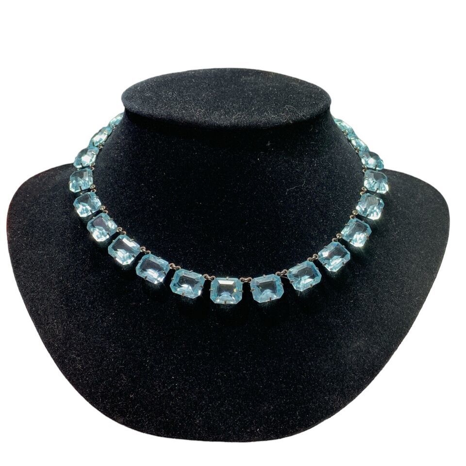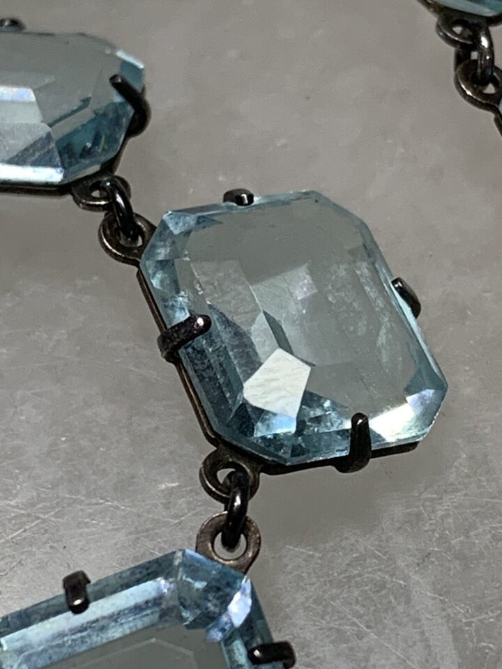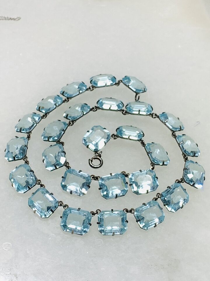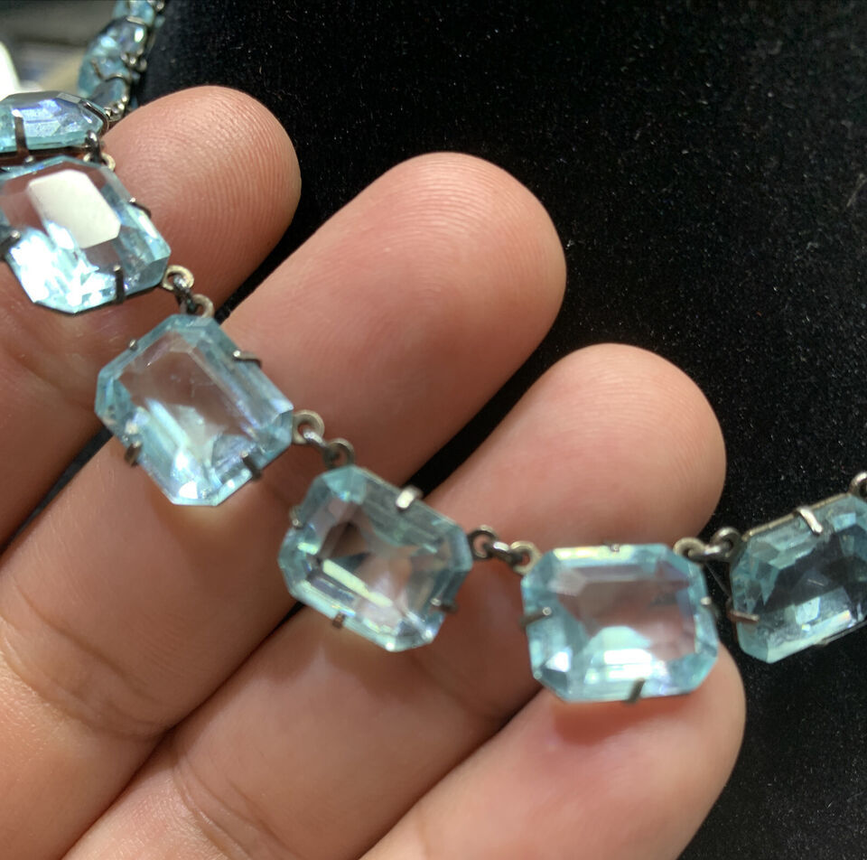 antique art deco Sterling Silver 925 Prong aqua necklace.