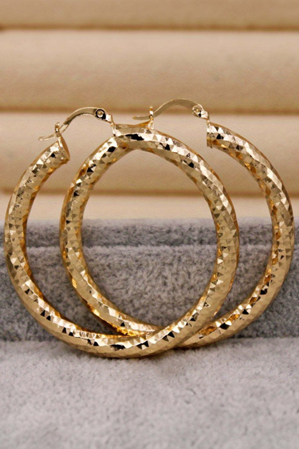 Transform your ensembles with these stunning boho earrings. Featuring a chic, oversized hoop design that makes a statement, they're sure to add a touch of luxury to your look. The intricate diamond cut adds extra shine and texture, making them a must-have accessory.