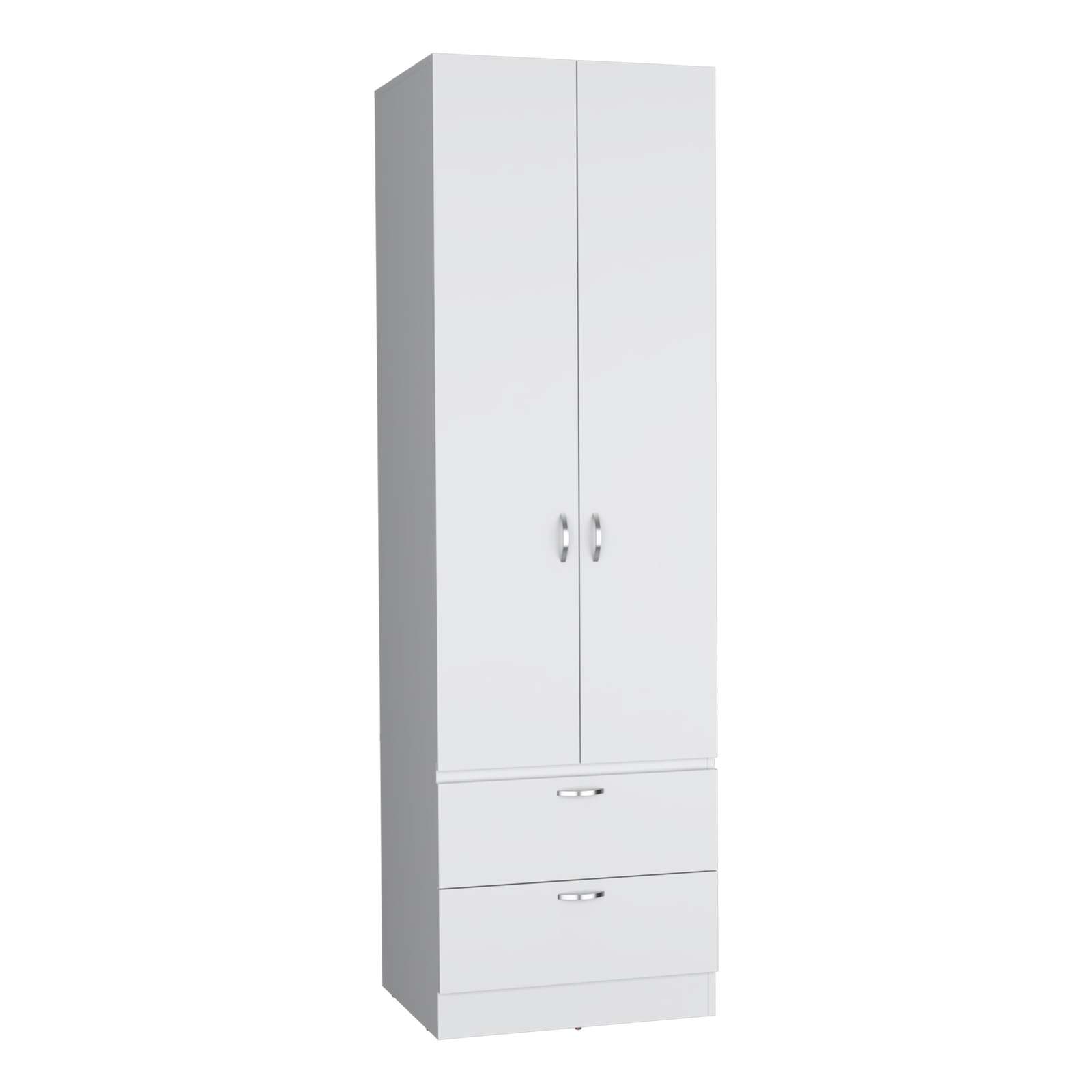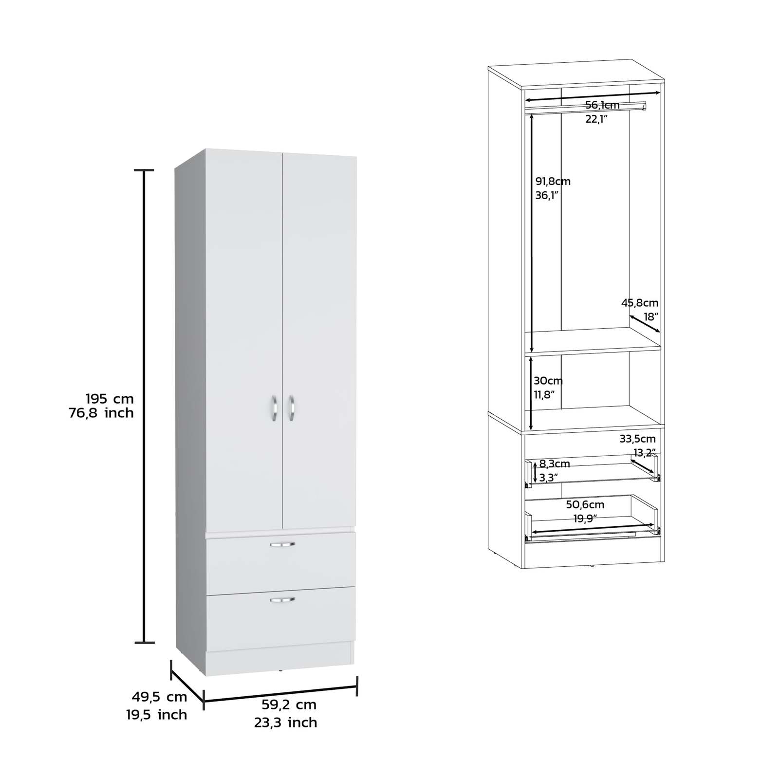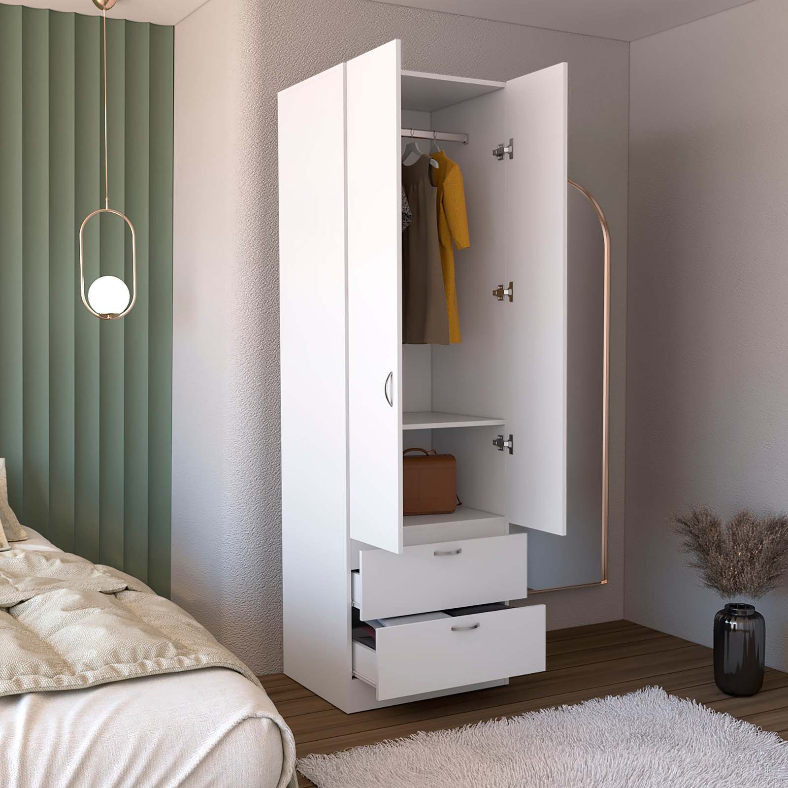 Armoire Wardrobe 76" H with Hanging Rod & Drawers - White