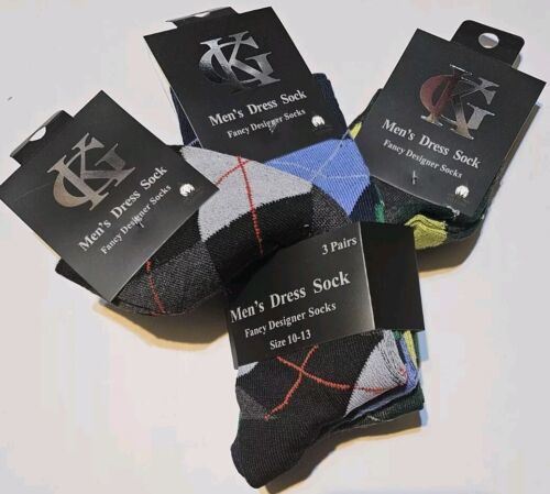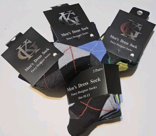 KG men's dress socks Argyle fancy design socks size 10 - 13 pairs 3 Pack