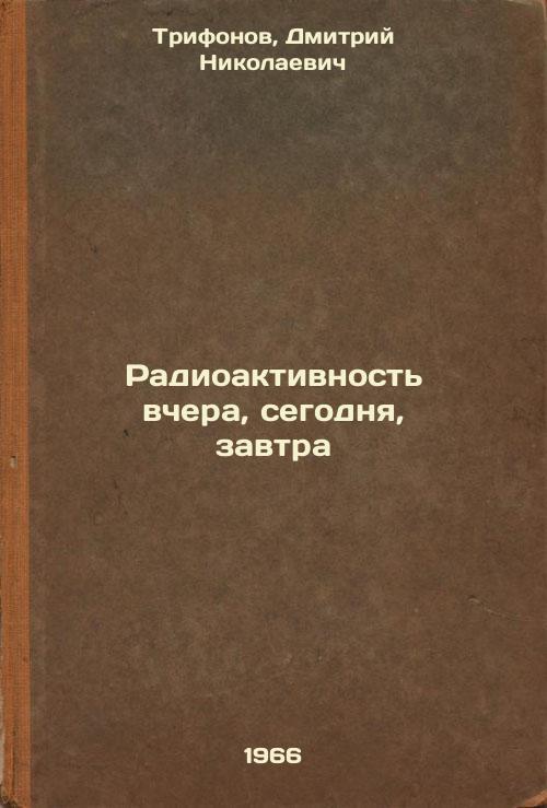 Short description: In Russian. Trifonov, Dmitry Nikolaevich. Radioactivity yesterday, today, tomorrow. Moscow: Atomizdat, 1966. Radioaktivnost' vchera, segodnya, zavtra. In Russian /Radioactivity yesterday, today, tomorrow . The image is provided for reference only. It may reflect condition of one of the available copies or only help in identifying the edition. Please feel free to contact us for a detailed description of the copies available. SKU8456554