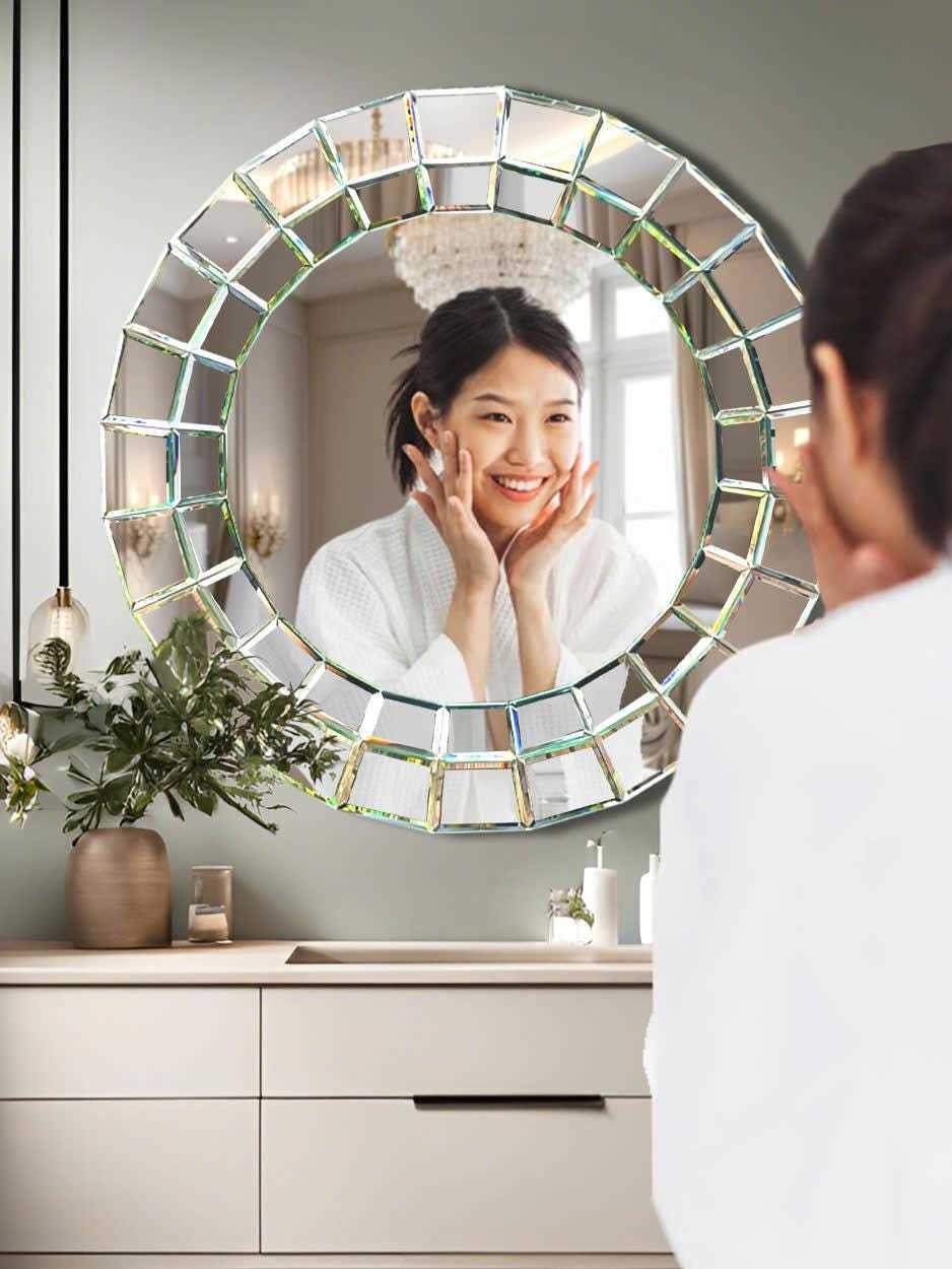 Artistic round wall mirror, bathroom mirror,wall decoration mirror, hand-polishe