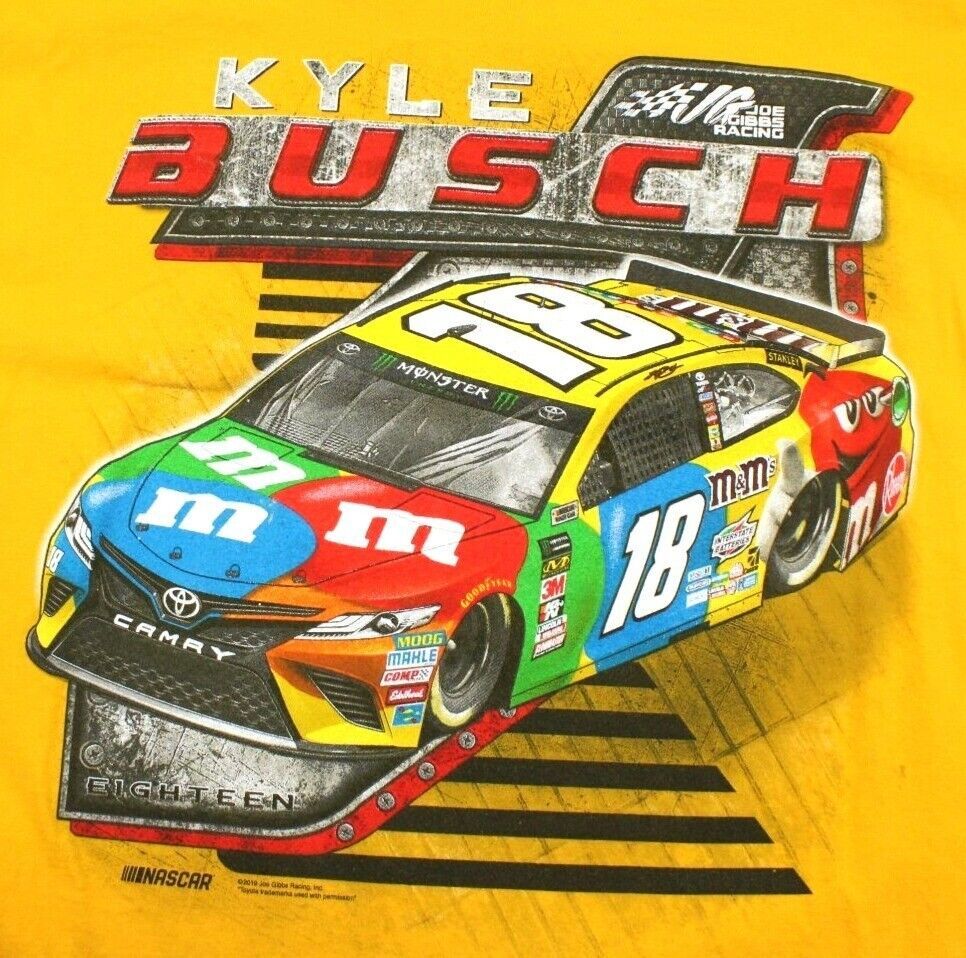 Kyle Busch Joe Gibbs Racing M&Ms NASCAR Yellow Graphic T-Shirt L 2019
