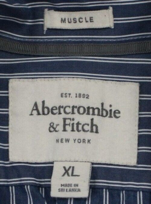 Abercrombie & Fitch Muscle Fit Button Up Blue/White Striped Long Sleeve Shirt XL