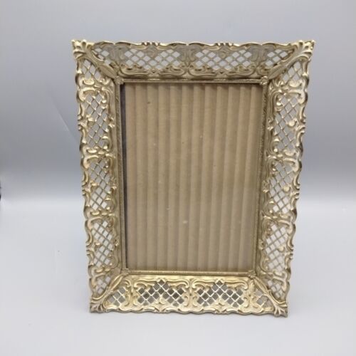 Easel Picture Frame Gold Ornate Metal Filigree MCM Hollywood Regency Fits 5x7